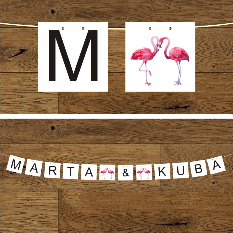 Zaproszenia ślubne z flamingami na złotym kartoniku. Flamingi