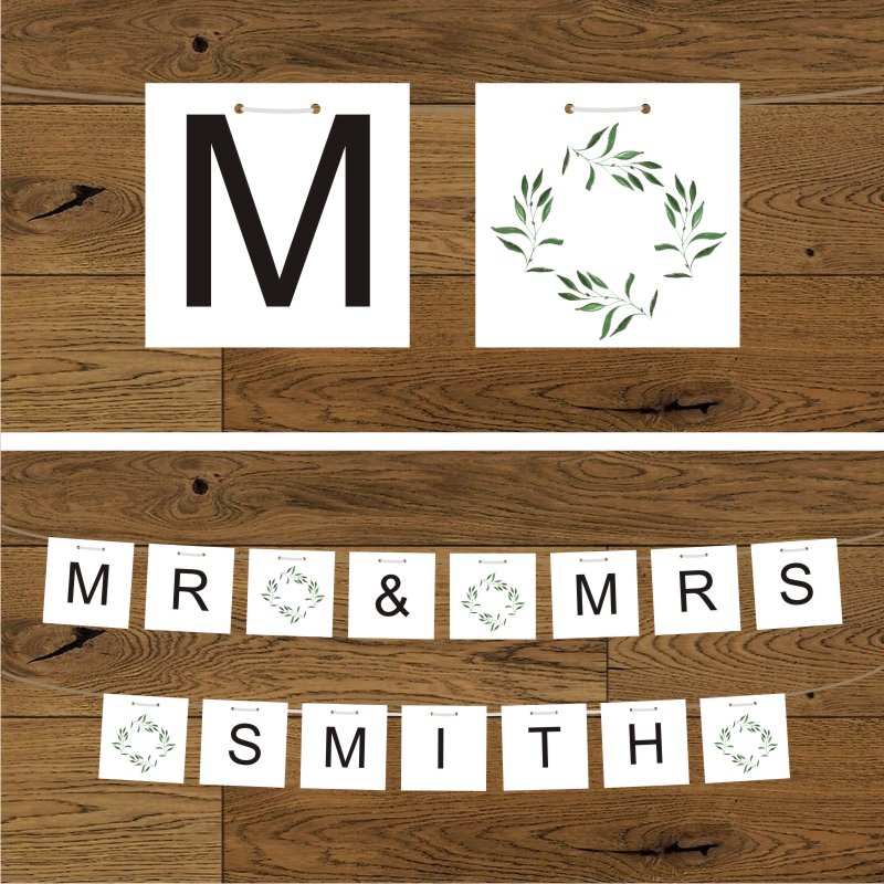 Baner weselne na złotym podklejeniu. Zielone gałązki delikatne