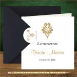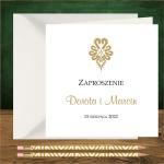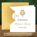 Zaproszenia ślubne góralskie z góralską parzenicą w kolorze złotym. Parzenica złota