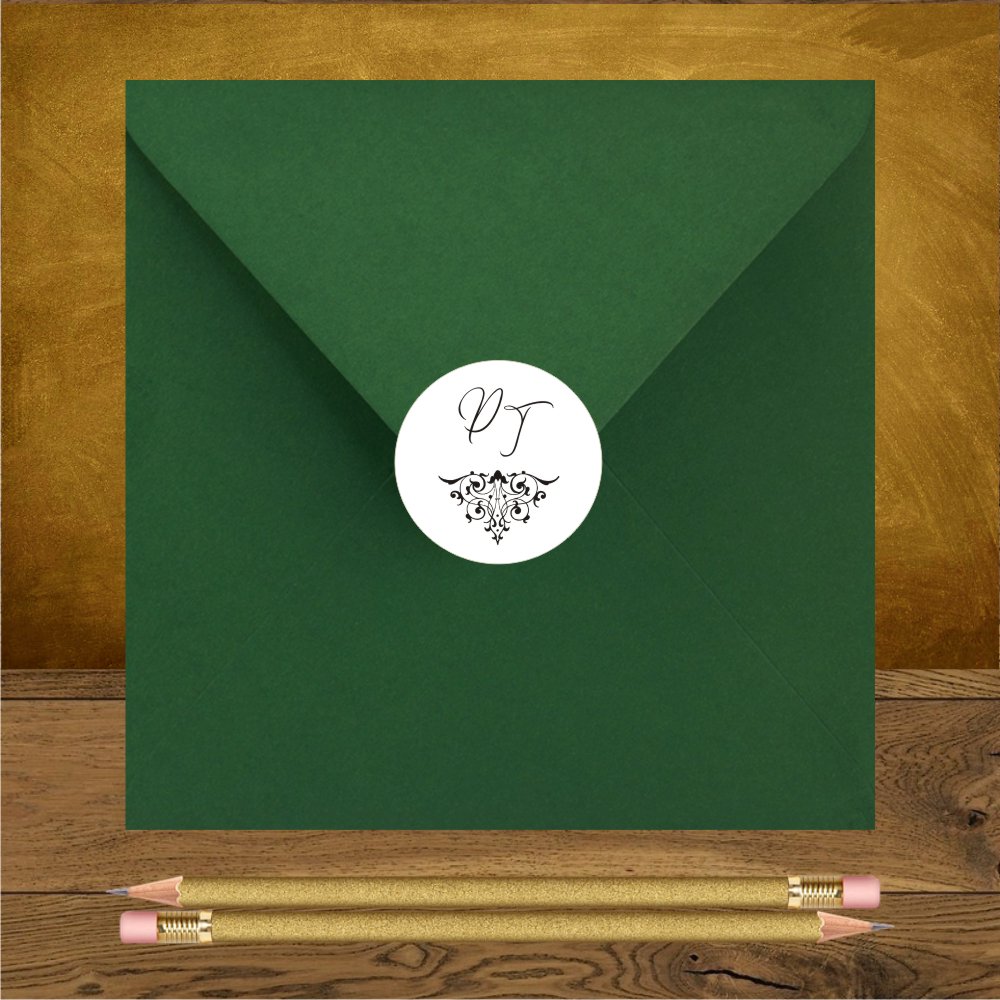 Wykonana z papieru takiego jak użyty w zaproszeniach. W przykładzie koperta zielona.