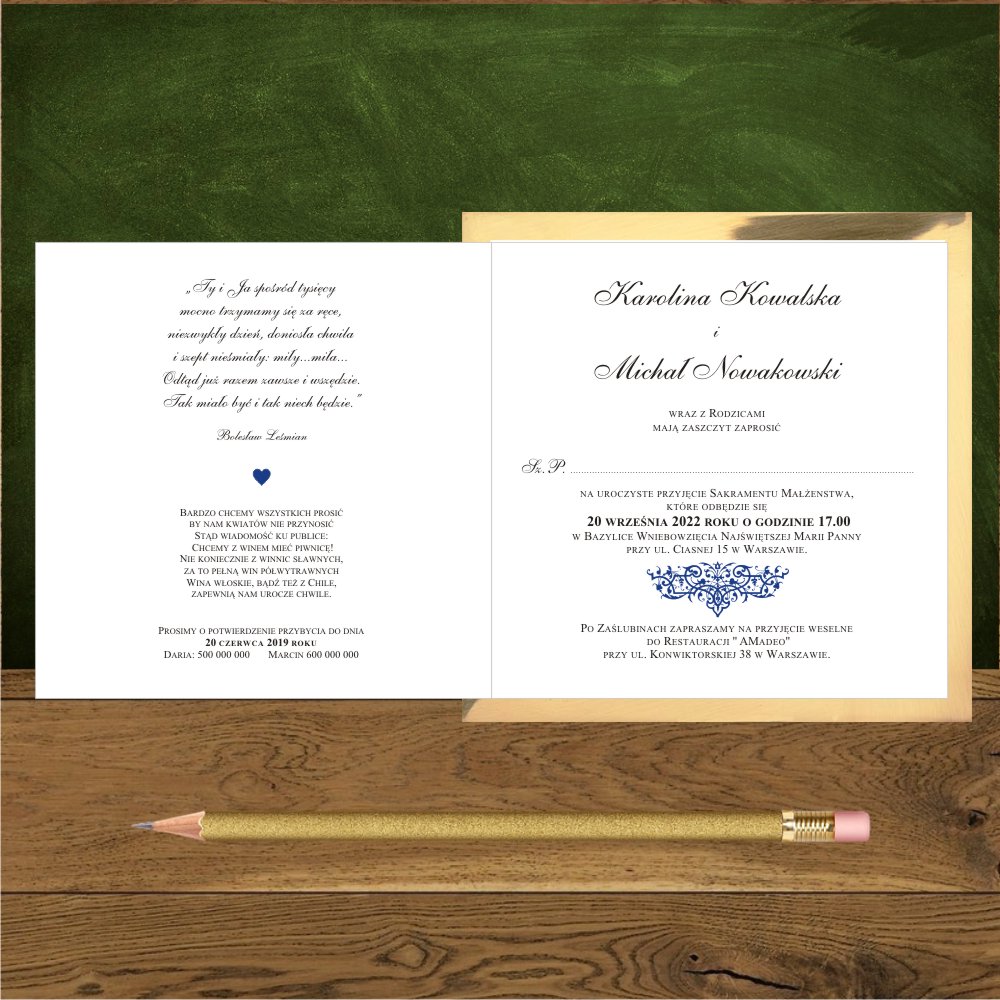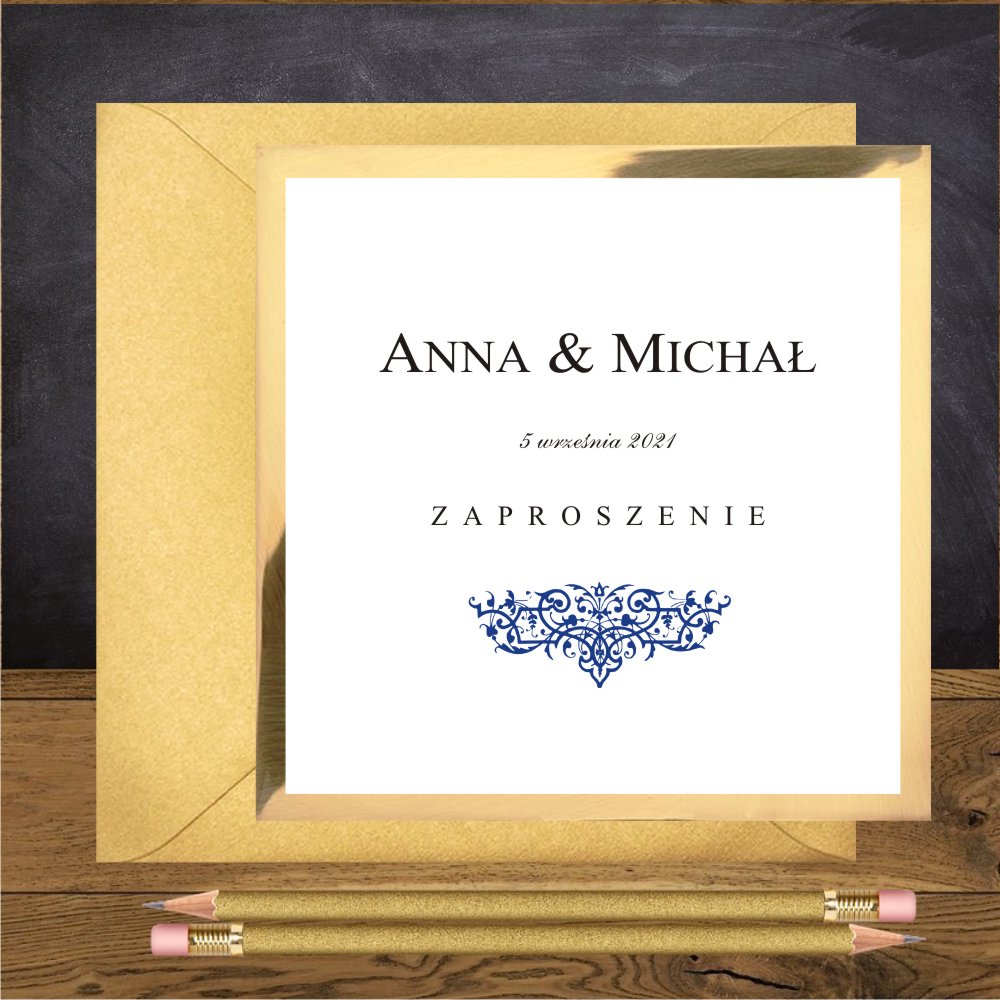 Zaprosnia slubne glamour z granatowym ornamentem. Oliwia Granatowa