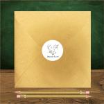 Naklejka na kopertę w kształcie kółeczka Wykonana z eleganckiego papieru jak w zaproszeniach. |