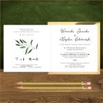 Zaproszenia na ślub rustykalne z jedną gałązką. Zielone gałązki delikatne