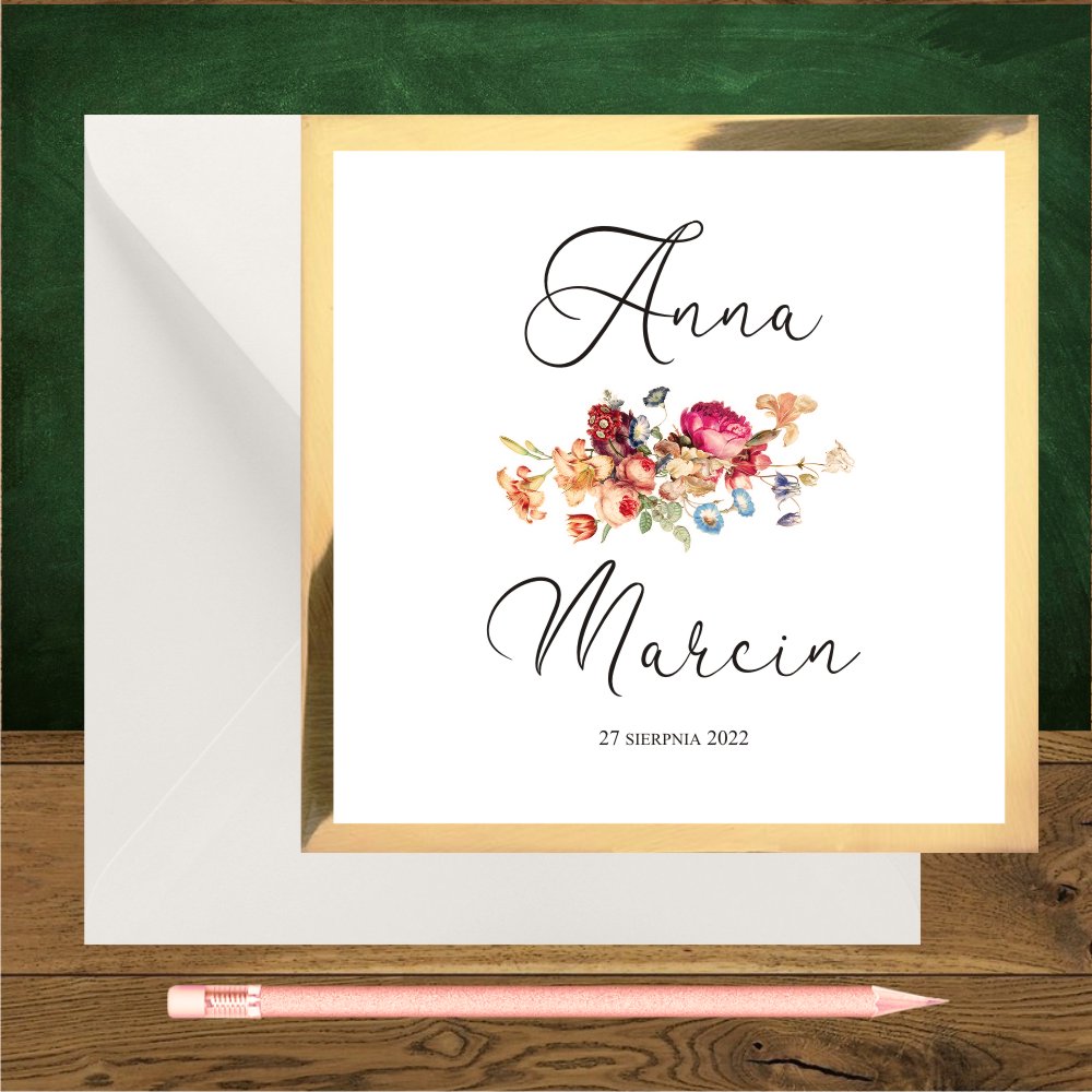 Zaproszenia ślubne Angielskie róże retro flanella - fantazyjne. Kwadratowe proste