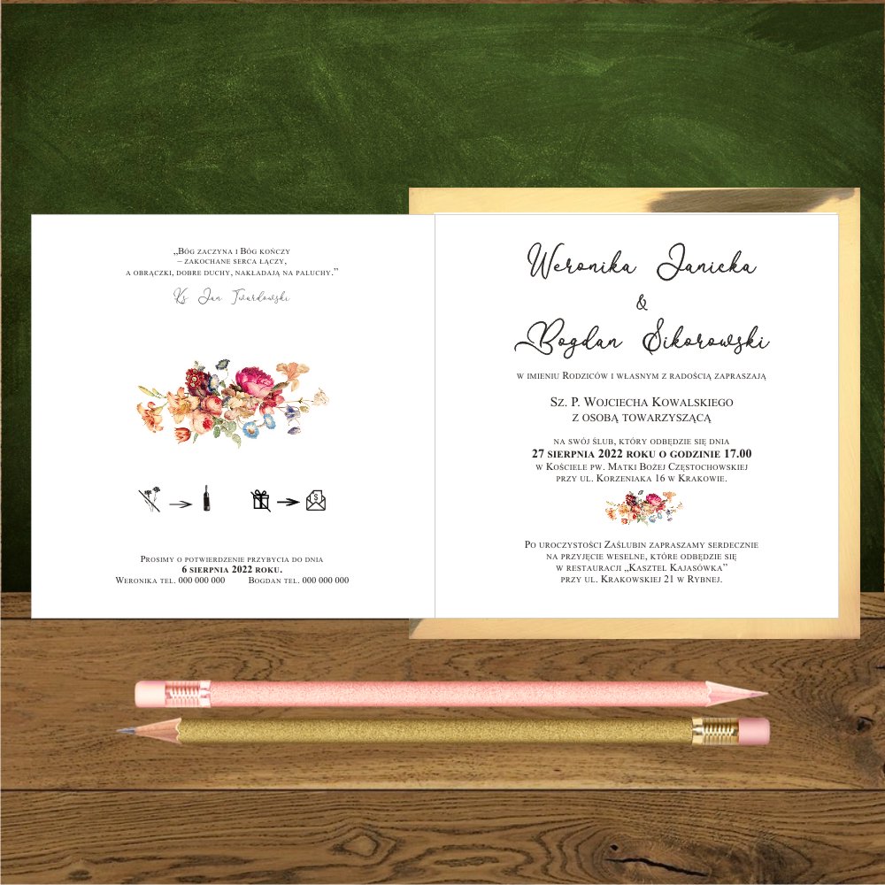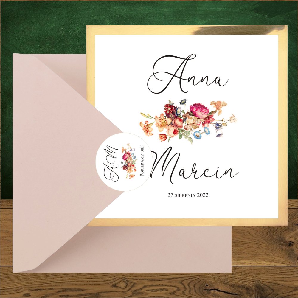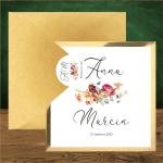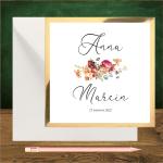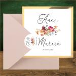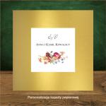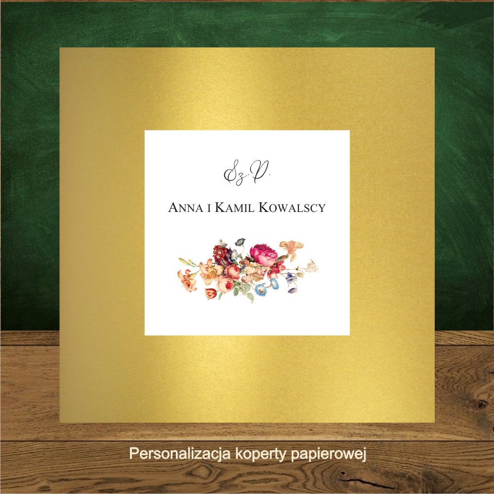 Zaproszenia ślubne Angielskie róże retro flanella - fantazyjne. Kwadratowe złoty kartonik