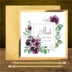 Zaproszenia ślubne glamour fioletowe kwiaty
