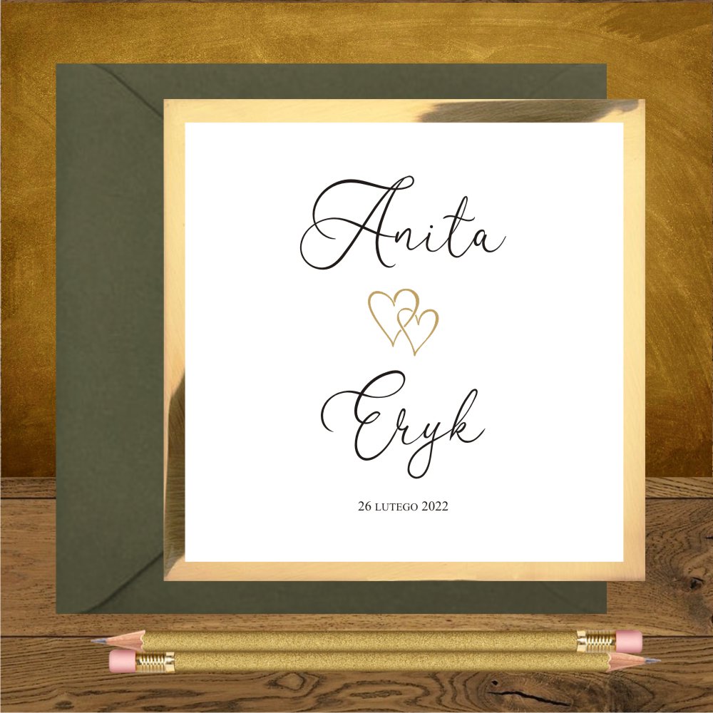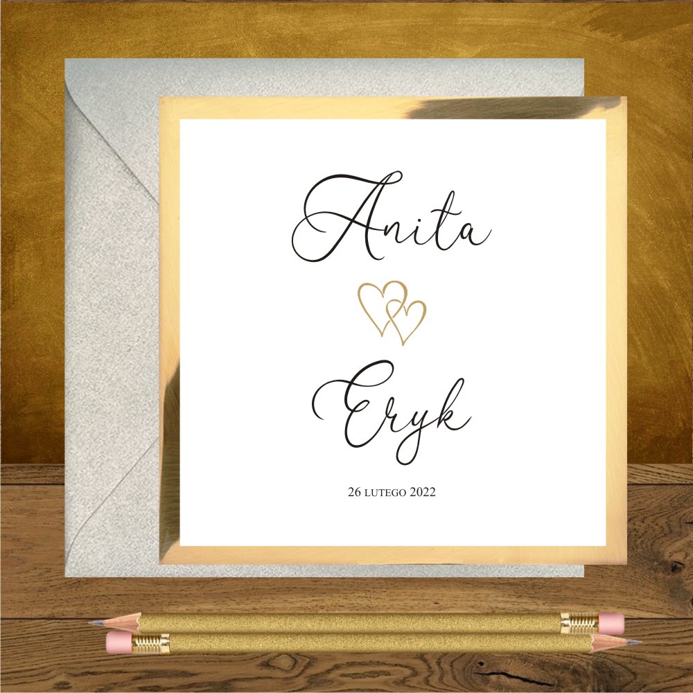 Zaproszenia ślubne minimalistyczne z dwoma złotymi serduszkami