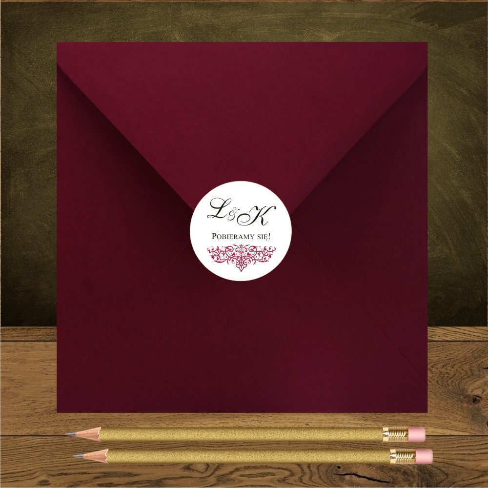 Do zaproszeń z ornamentem w kolorze bordo pasują