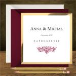 Zaproszenie glamour z pięknym ozdobnym ornamentem na froncie zaproszenia w kolorze bordowym.