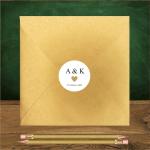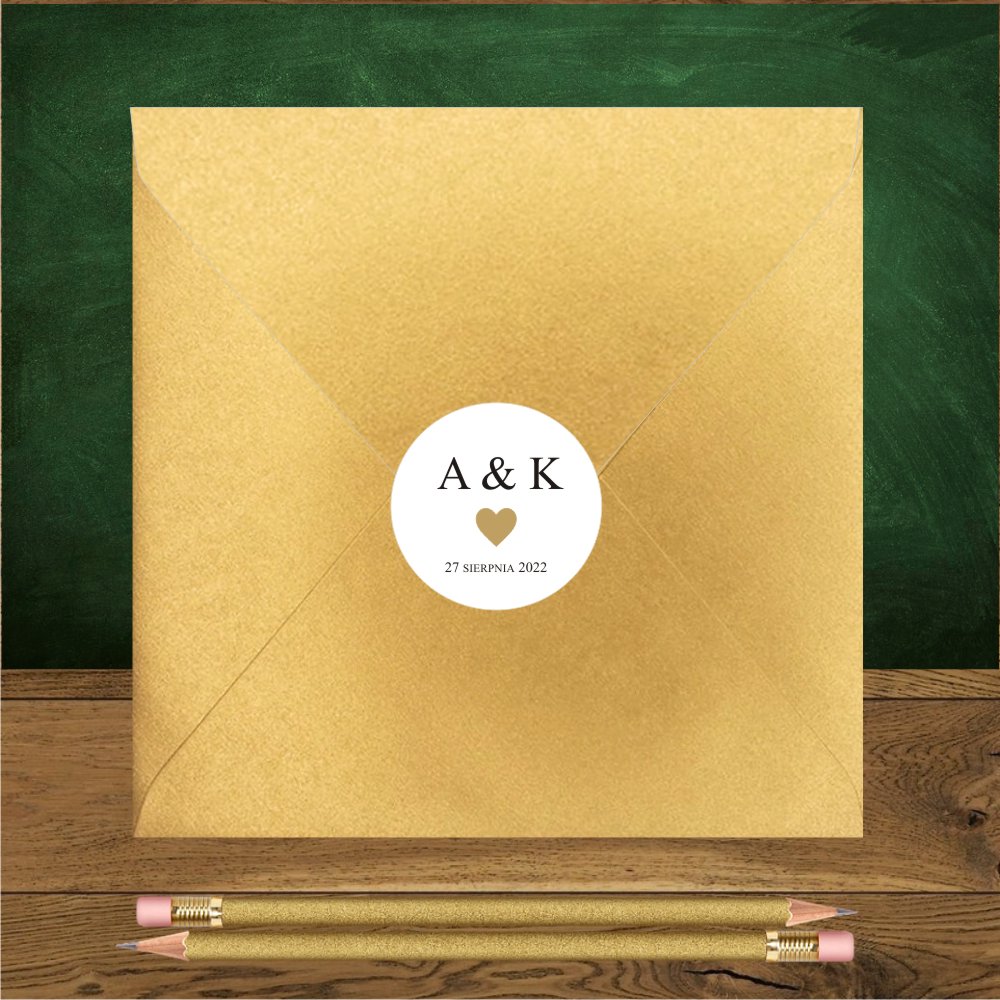 Naklejka na kopertę. Z papieu takiego jak zaproszenia ślubne. Dodaje uroku zaproszeniom. W przykładzie koperta z kolorze złotym |