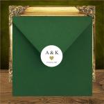 Naklejka na kopertę. Z papieu takiego jak zaproszenia ślubne. Dodaje uroku zaproszeniom. W przykładzie koperta zielona |