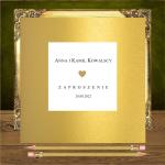 Zaproszenia slubne glamour, kwadratowe na złotym kartoniku. Serduszko złote mini i inicjały