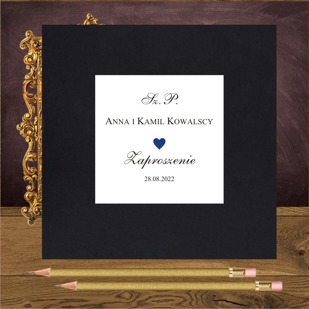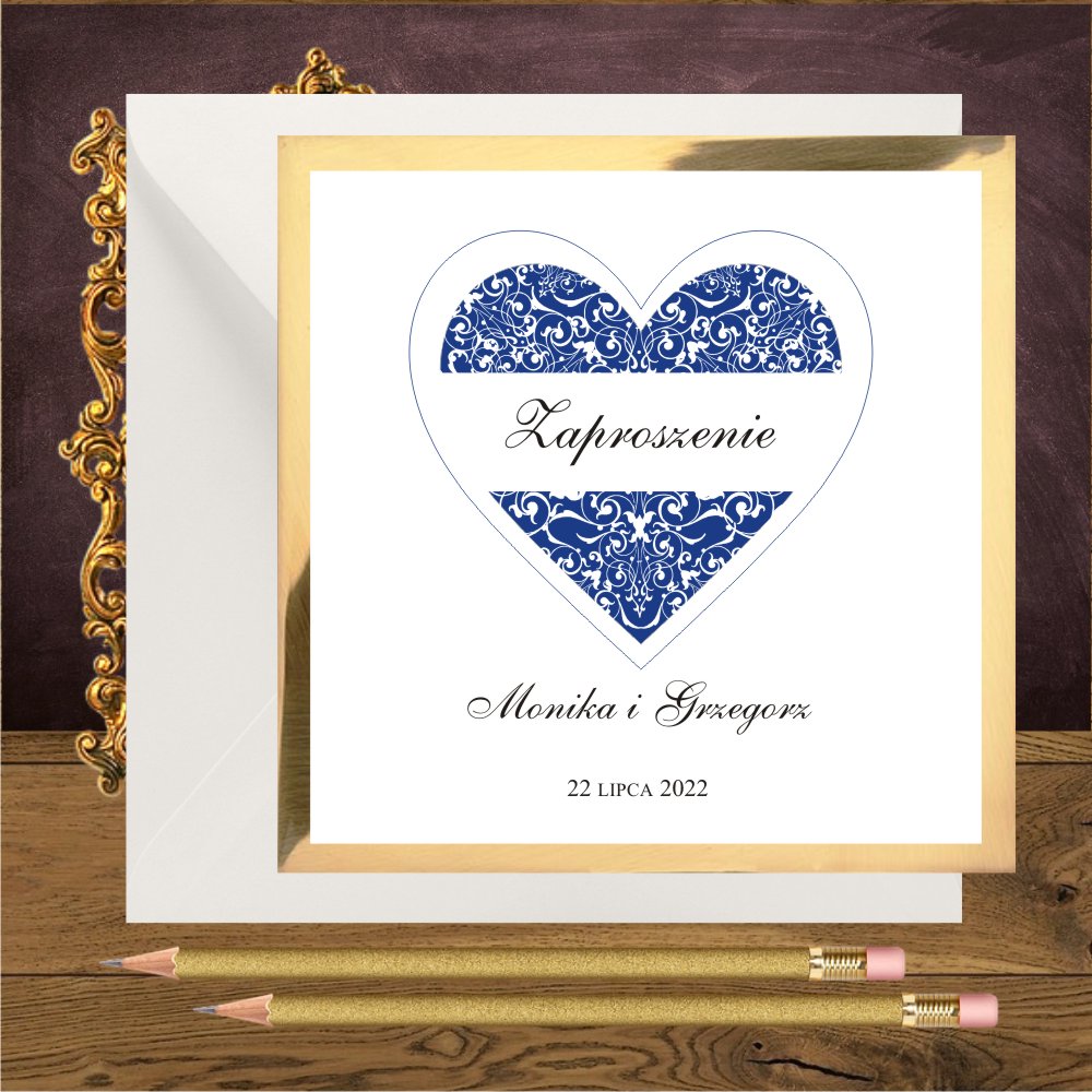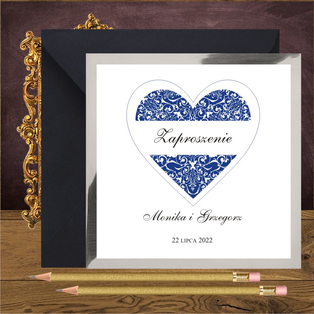 Zaproszenia ślubne z granatowym sercem na mirror. Serce granatowe