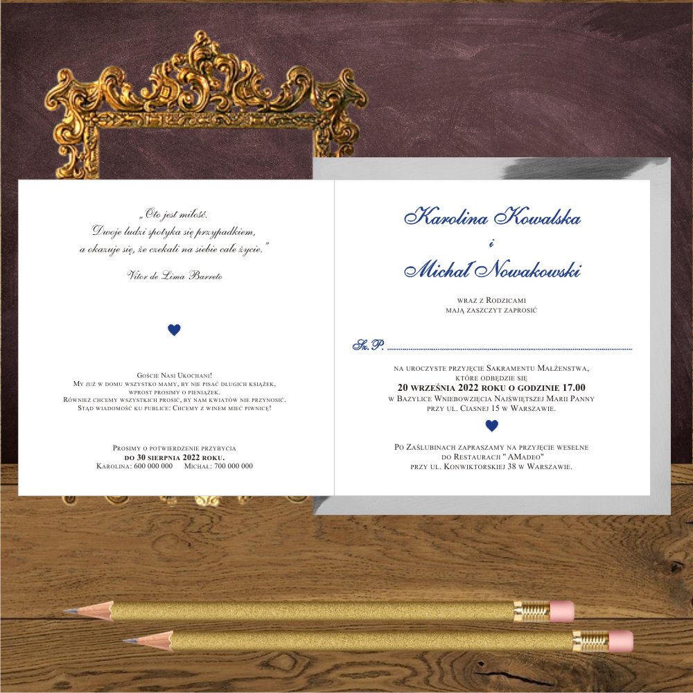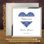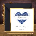 Zaproszenie ślubne w stylistyce glamour z sercem w kolorze granatowym