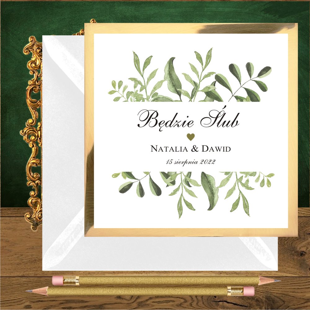 Do zaproszenia ślubnego z zielonymi listeczkami pasują