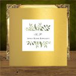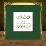 Zaproszenia ślubne złoto zielone rustykalne z elementami glamour. Zielone listki i serduszko mini na mirror
