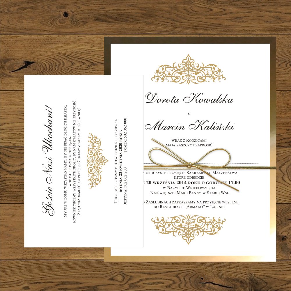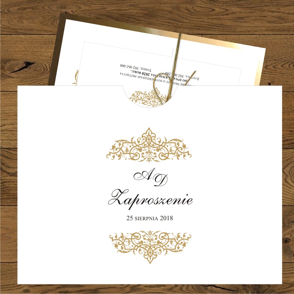 Zaproszenia w saszetce Oliwia złota