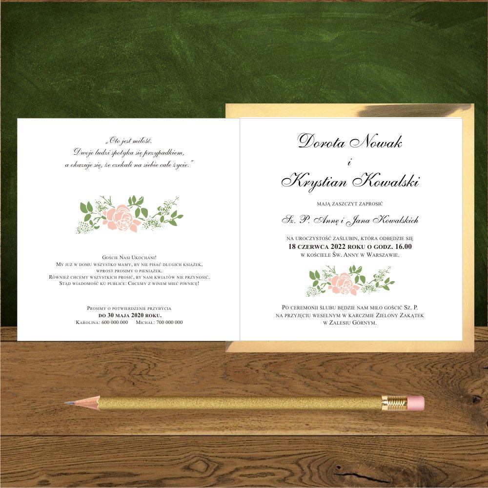 • Format zaproszenia: 14 x 14 cm po złożeniu