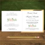 Zaproszenia ślubne kwiatowe. Róże łososiowe i zielone listki