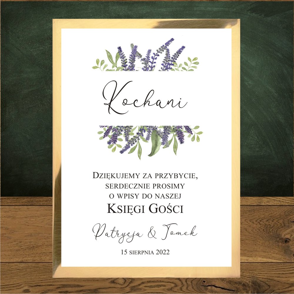 Piękne zaproszenia ślubne w stylu boho z lawendą. Lawendowy ogród. Kwadratowe, naklejane na złoty kartonik