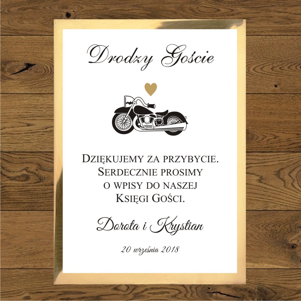 Zaproszeia ślubne z motocyklem i złotym serduszkiem. Kwadratowe, proste. Motor