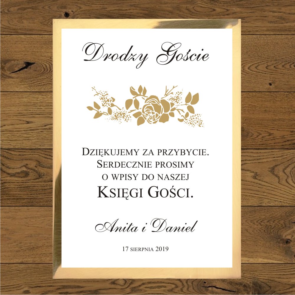 Zaproszenia w stylistyce glamour Złote róże naklejane na złoty mirror