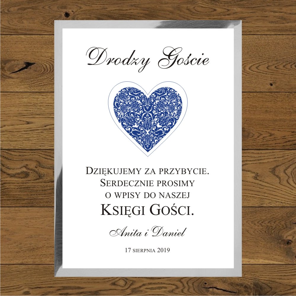 Księga gosci Serce granatowe. Ramka mirror srebrny