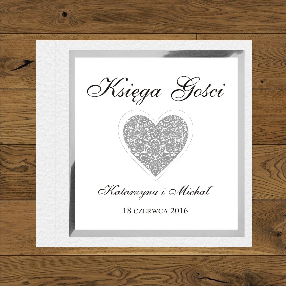 Proste zaproszenia ze srebrnym sercem, kwadratowe. Serce srebne