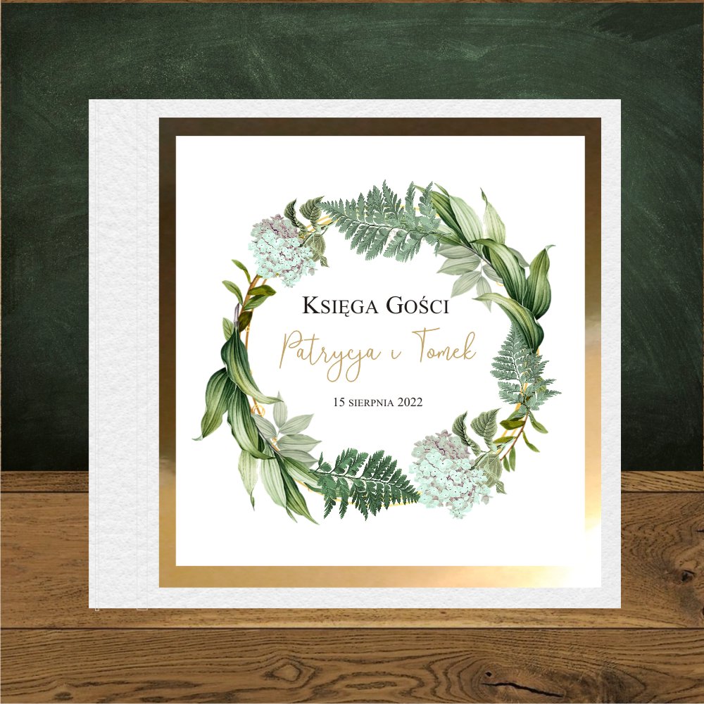 Księga gości weselnych z pięknym wiankiem w stylu boho.