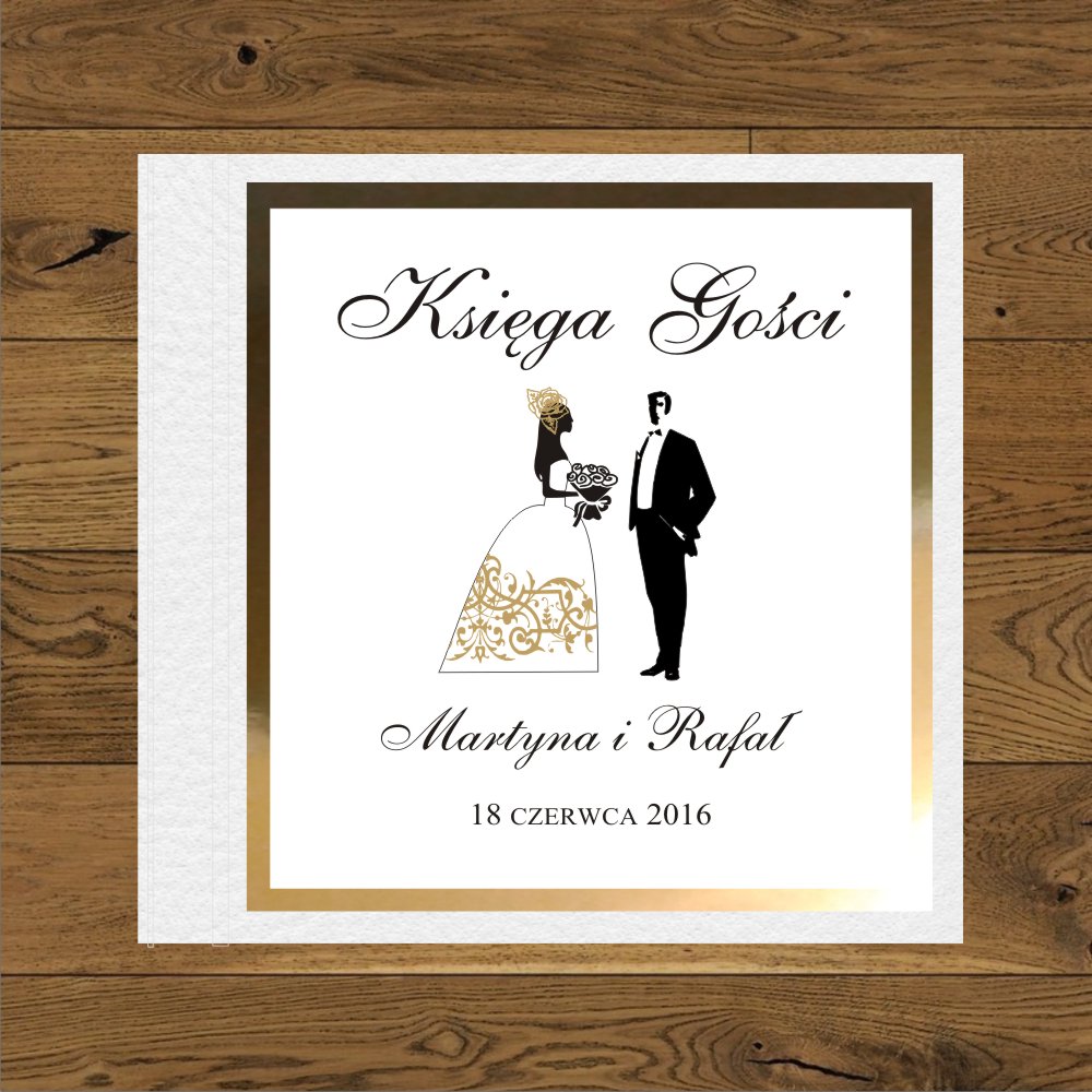 Para młoda ornament na sukni złoty. Księga gości weselnych