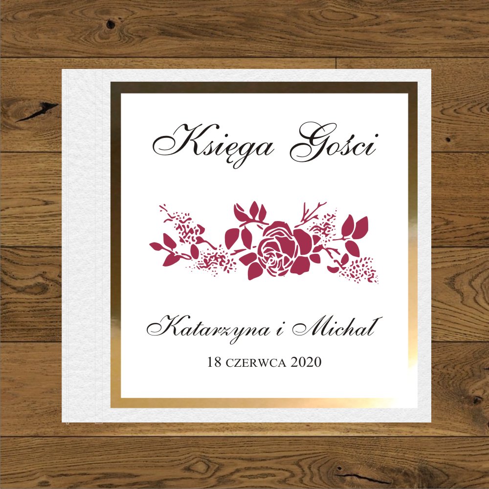 Róże bordo kwadratowe naklejane na złoty mirror. Oryginalne zaproszenia złoto - bordowe