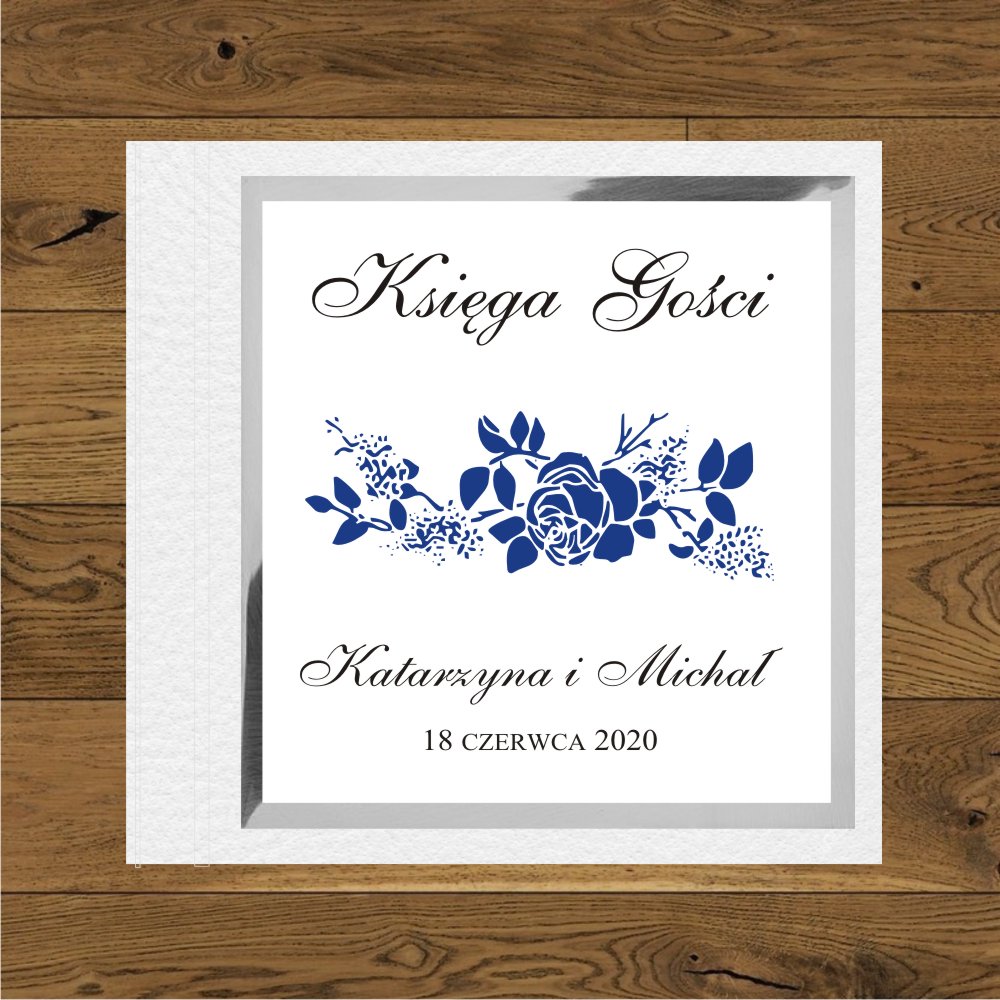 Front do pudełek na koperty Róże granatowe. Ramka - papier srebrny mirror