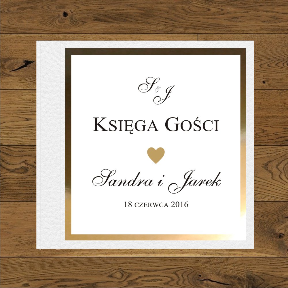 Zaproszenia ślubne minimalistyczne, proste, kwadratowe. Serduszko złote mini i inicjały