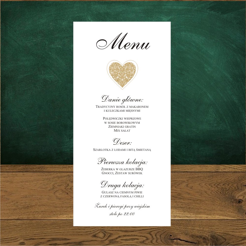 Menu jednostronne. Serce złote