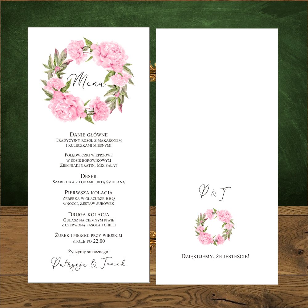 Zaproszenia ślubne jednostronne piwonie romantyczny różowy