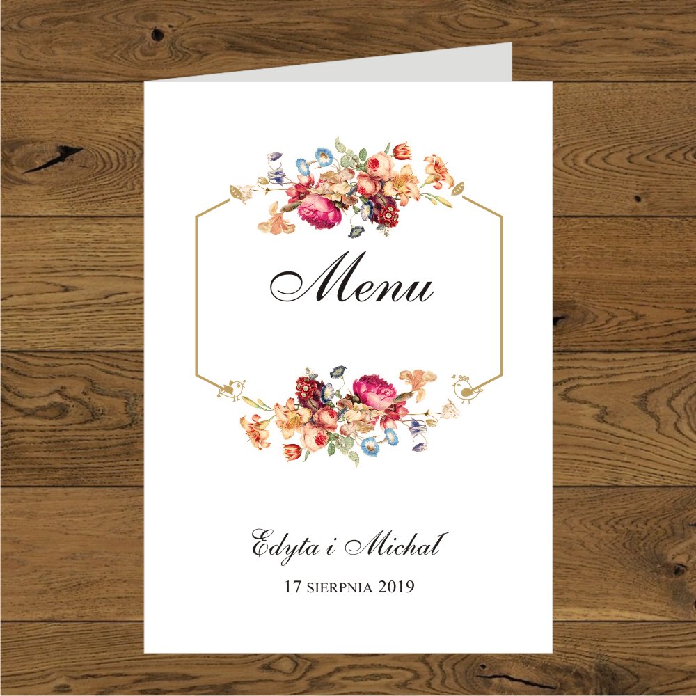Zaproszenia ślubne boho. Angielskie róze retro- geometryczne. Na złotym kartoniku.