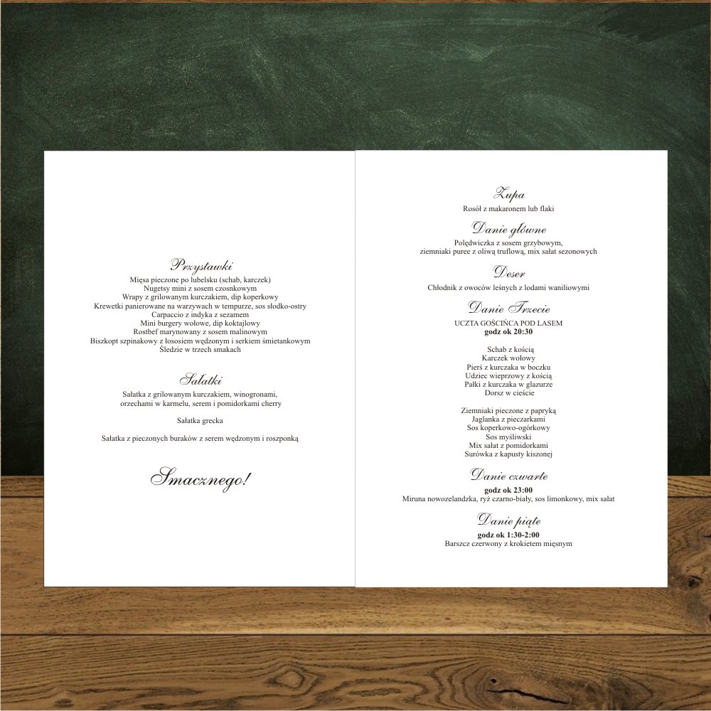 Menu otwierane weselne, pięknie wygląda na stole z kolorowym folkowym motywem.