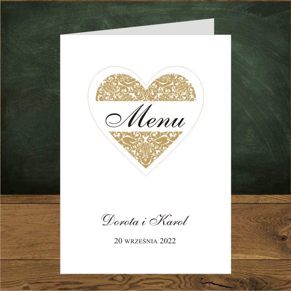 Menu jednostronne. Serce złote