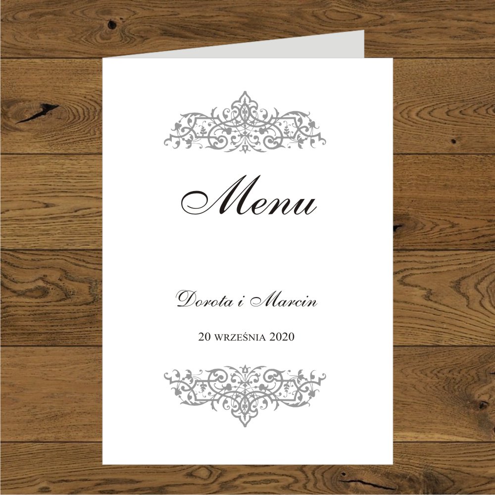 Zaproszenia na ślub ze srebrnymi ornamentami. Oliwia srebro