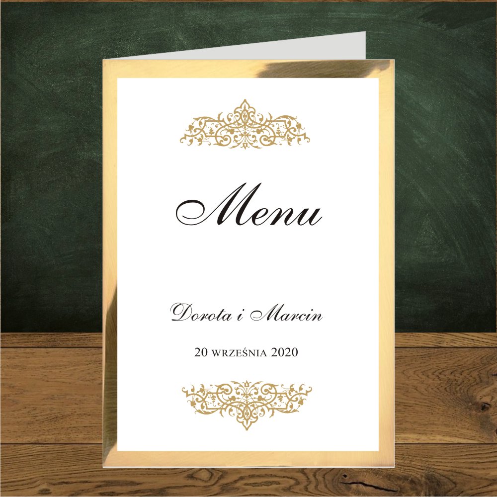 Zaproszenia jednostronne Oliwia złota dwa ornamenty