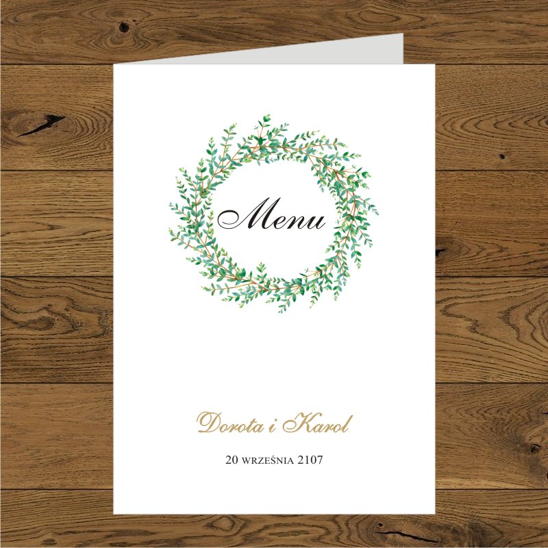 Zaproszenia ślubne rustykalne, boho. Wianek zielone gałązki proste, kwadratowe
