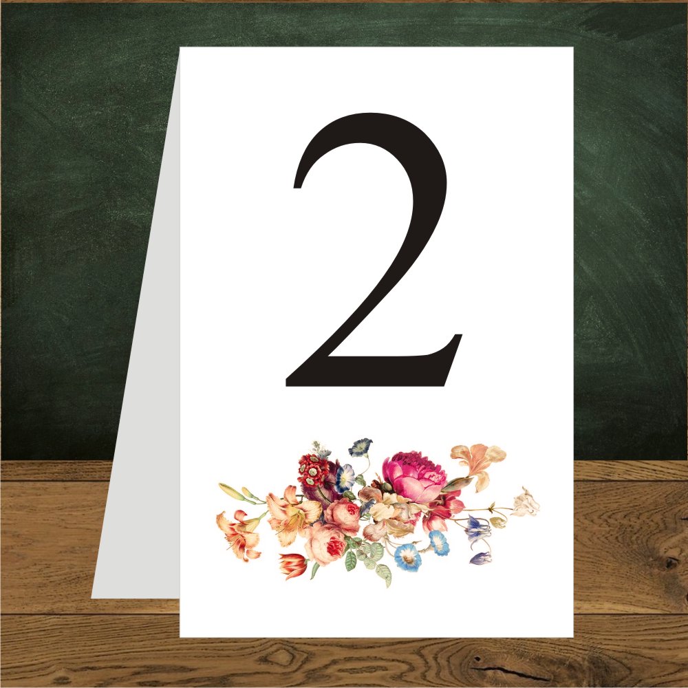 Numerki na stół. Stylowe, retro w kolorach bordo, złota, delikatnego błękitu w stylu boho.