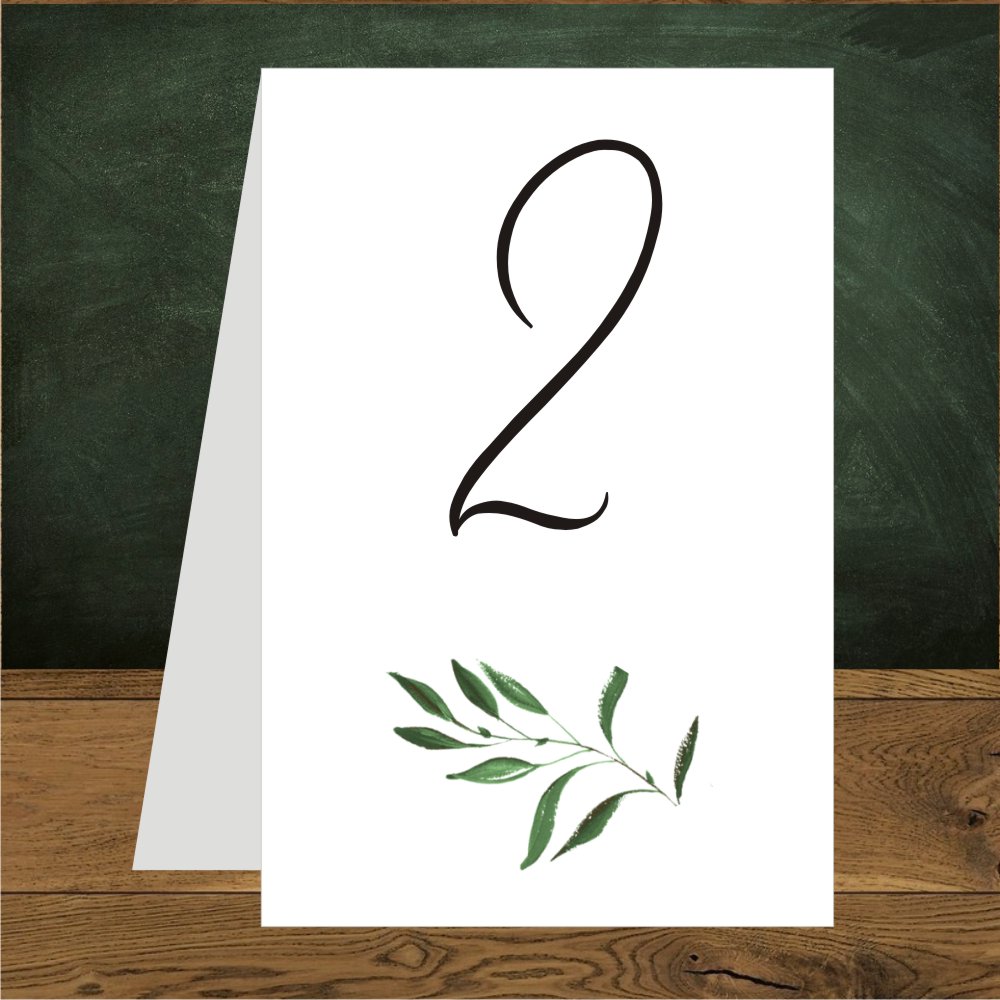 Numerki na stół weselny. Rustykalny motyw delikatnego zielonego listka