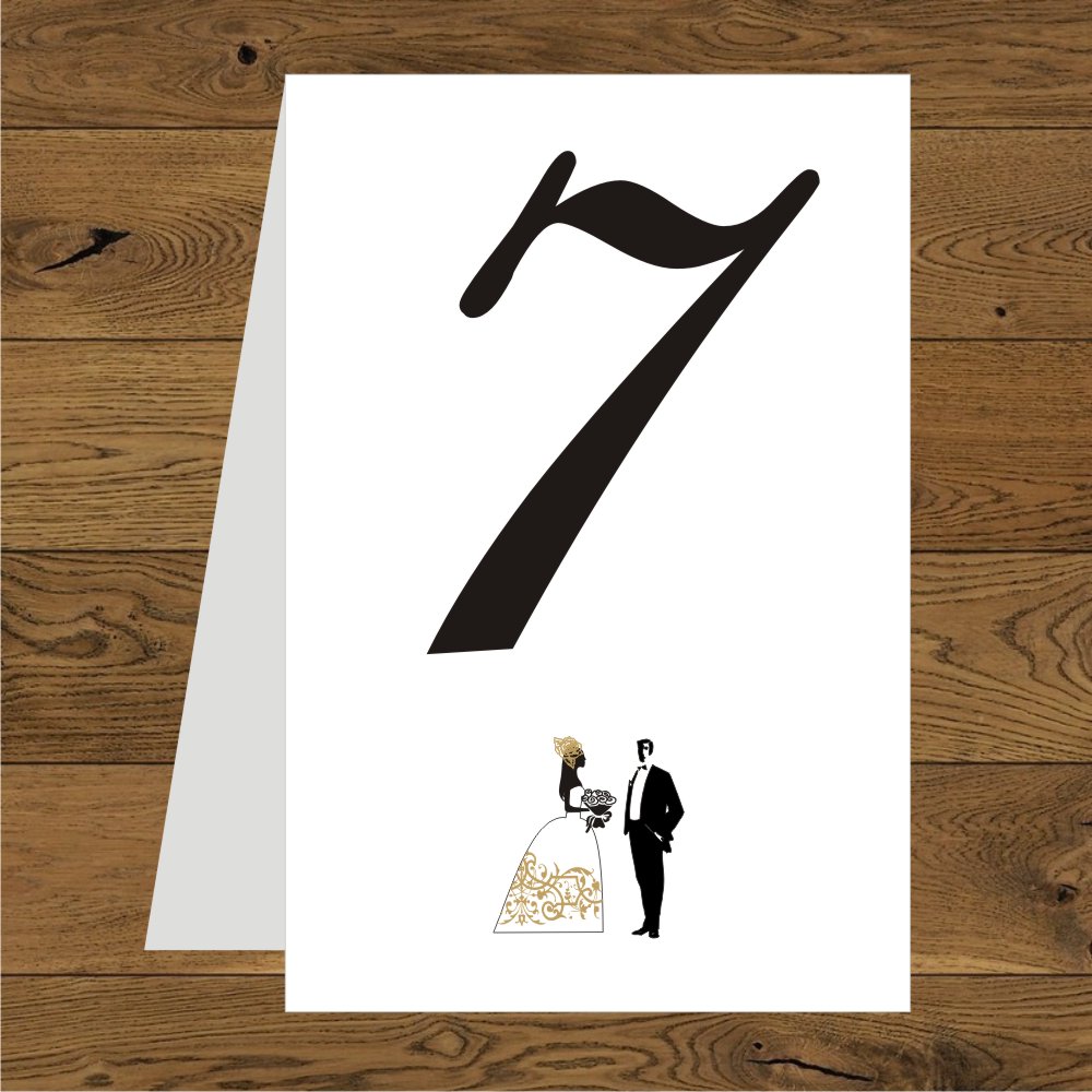 Para młoda ornament na sukni złoty. Numerek na stoł
