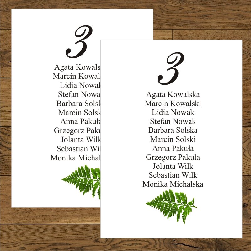 Zaposzenie ślubne z gałązkami paprotki. Kwadratowe, proste. Paprotka