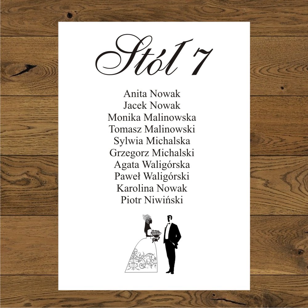 Para Młoda - ornament sukni srebrny. Kartki do planu z usadzeniem gości