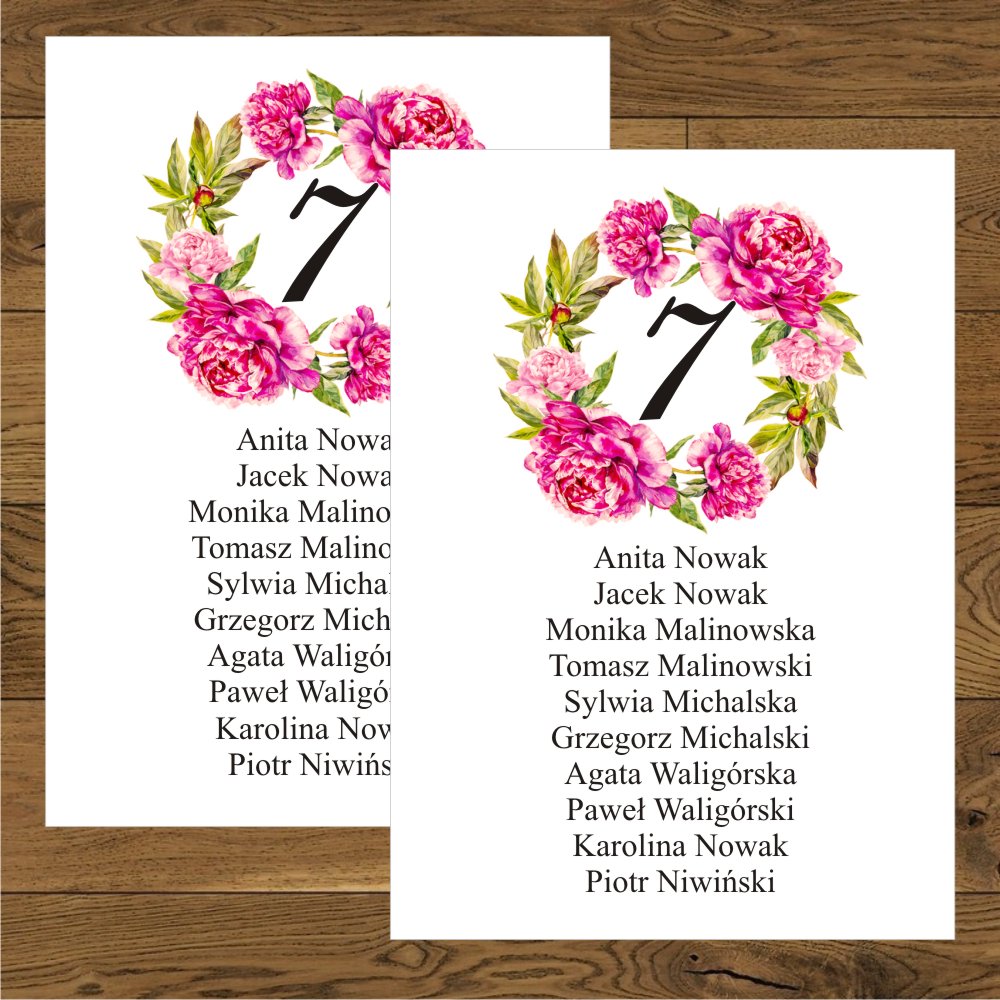 Zaproszenia z piwonią w małym wianuszku.