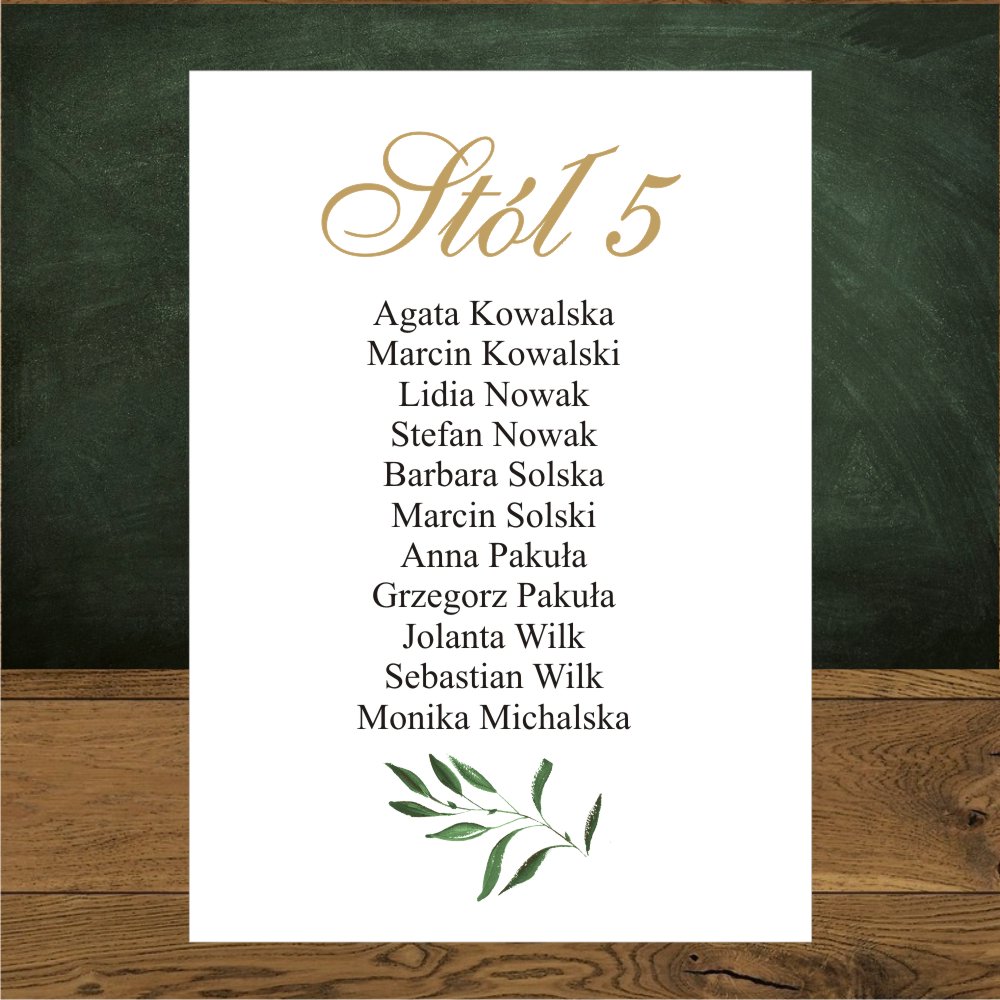 Plan stołów w postaci kartek. Zielone gałązki delikatne