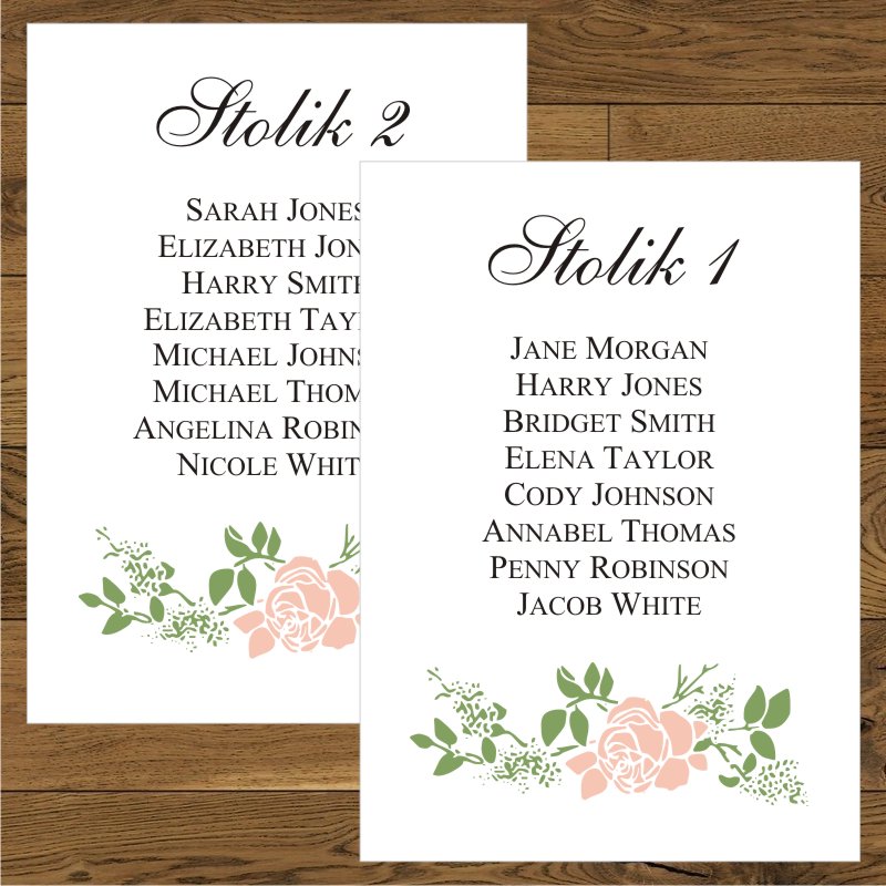 Plan stołów – same kartki