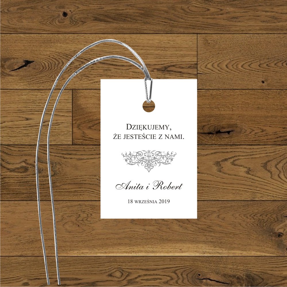 Olivia szara - papier biały - wstążka srebrna